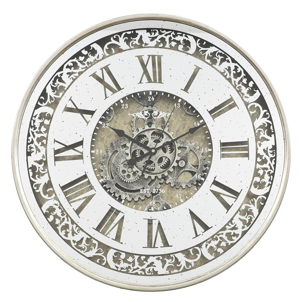 Круглий настінний годинник із дзеркалом у ретростилі. Вони виготовлені з металу та скла, що забезпечує довговічність. На лицьовій стороні скло з дзеркалом, яке робить годинник унікальним (білий — це дзеркальне зображення). Годинник створить неповторну атмосферу практично в будь-якій кімнаті, а завдяки своїм розмірам стануть дуже помітним доповненням, а дзеркало оптично збільшить кімнату. Ніхто не пройде повз такі години незалежно.