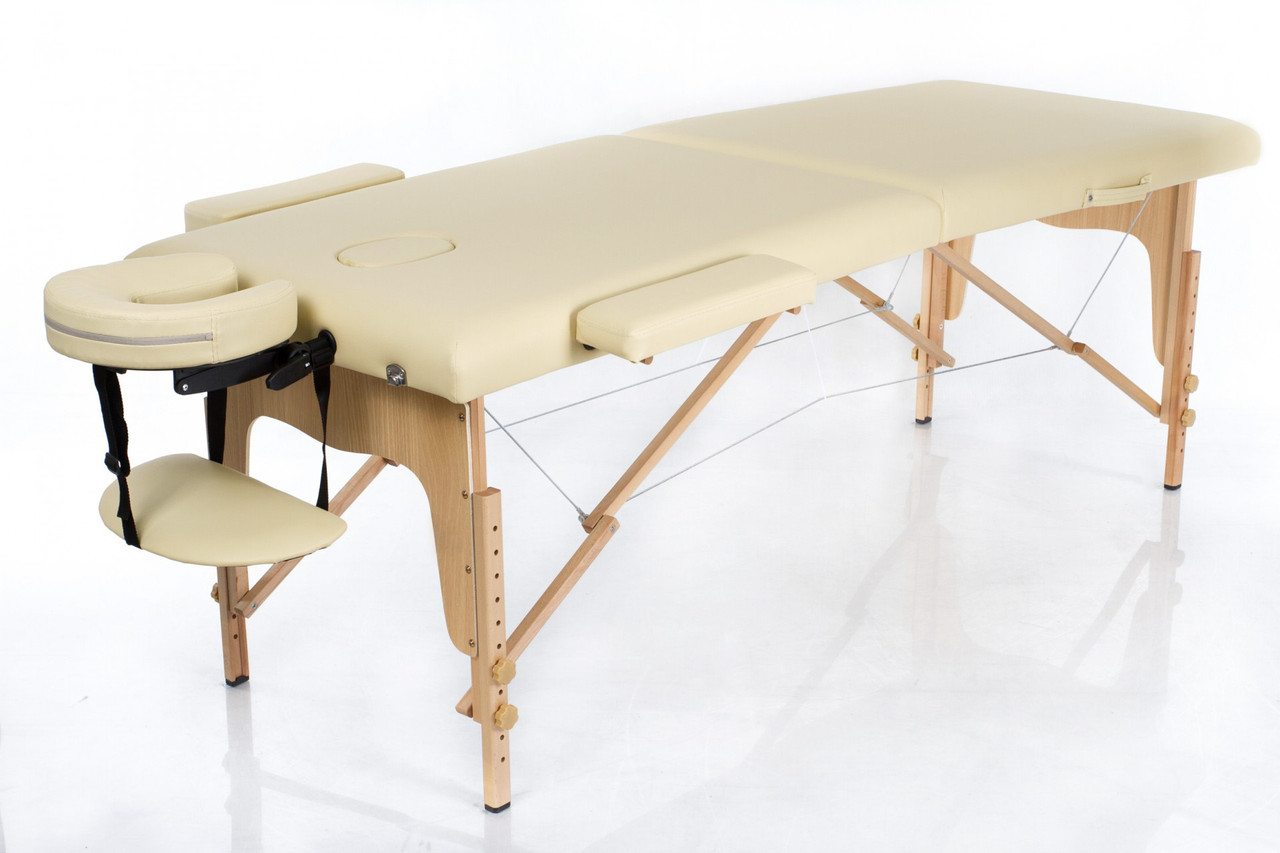 Масажні столи розроблені з турботою про зручність не тільки клієнта, а й майстра. Вирізи в торцевих панелях виготовлені так, щоб масажист міг виконувати процедури сидячи та ставити ноги під стіл. Водночас конструкція залишається стабільною, стіл не хитається. Завдяки складаній конструкції стіл легко трансформується в переносну валізу.